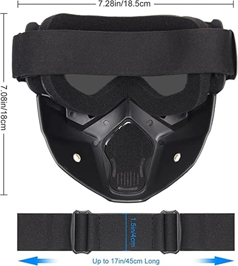 - BUILT-IN REMOVABLE MASK WITH UV PROTECTION: This SARTE Motorbike Open Face Goggle Mask is a windproof, anti-fog and anti-dust motorcycling goggles with a mouth filter and holes. It offers the best face protection from dust and other harmful elements and provides better air permeability.